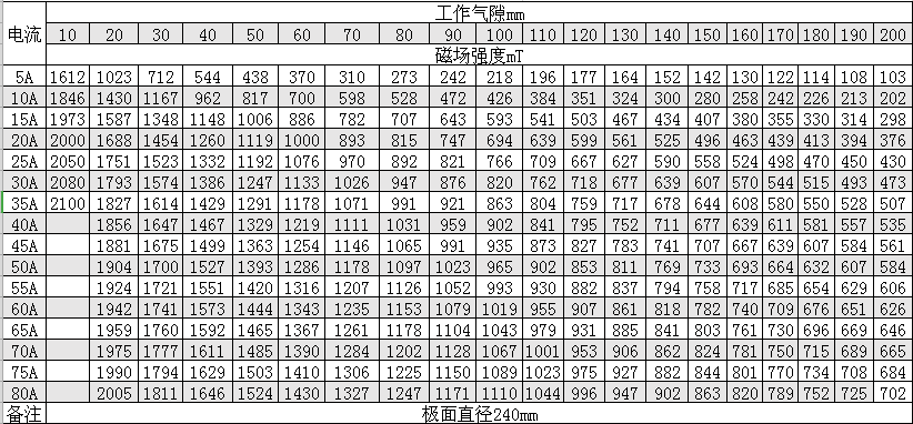 磁感應(yīng)強度:11000 Oe(氣隙100mm時)